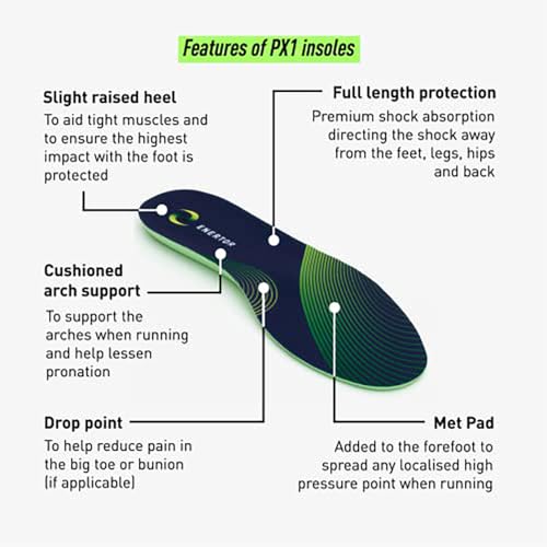 Enertor PX1 Walking Insoles - Solette Ortopediche - Escursionismo e in piedi - Plantari a figura intera - Per fascite plantare, pronazione, supporto per arco plantare e piedi piatti - Taglia 37-39