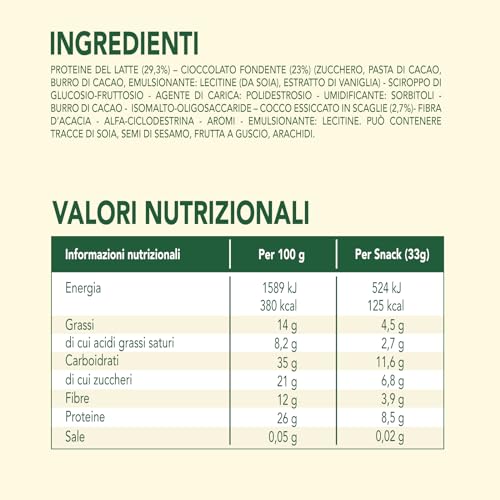 Enervit, EnerZona Protein Snack al Cocco, Kit con 30 Barrette Energetiche da 33gr con Proteine del Latte e Fibre, per Mantenere il Tono Muscolare, con Cioccolato Fondente, Senza Olio di Palma