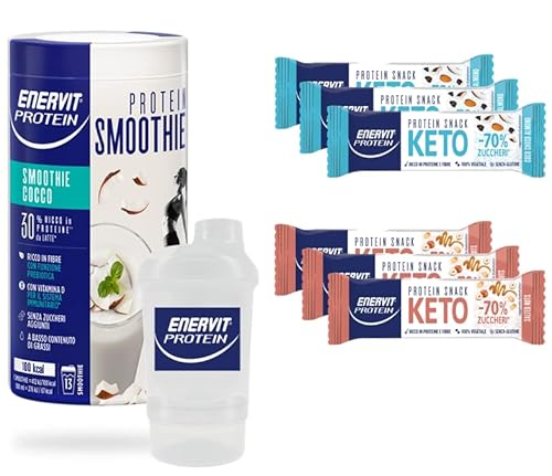 Enervit Protein Keto Pack - Smoothie Cocco 520gr + Keto Snack (3 Salted Nuts + 3 Coco Choco Almond) - [Shaker Omaggio]