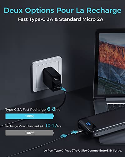 Accessorio perfetto per telefono: la nostra power bank è più leggera e più sottile di una powerbank ad alta capacità da 50.000 mAh e più resistente di una mini power bank da 20.000 mAh. È facile da usare e trasportare, rendendolo un accessorio ideale per il lavoro, i viaggi o il campeggio. Rimani alimentato ovunque tu vada!