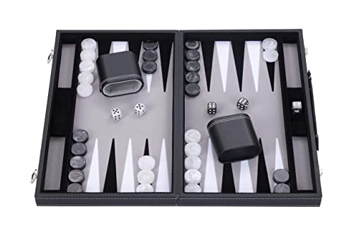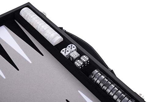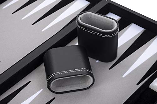 Engelhart - Backgammon de Lujo 45,5 cm Piel Simili, Incrustaciones Especiales de Fieltro - Dados y fichas nacaradas + 2 Tazas (nero/bianco/grigio)