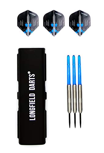 Engelhart Set 3 Freccette Professionali Acciaio Punta Acciaio, Nichel tungsteno 80%- Blu, Nero e Argento - 22 GR