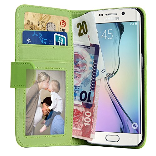 EnGive - Cover in pelle per Samsung Galaxy S6 Case con Funzione leggio e scomparto per tessere verde Samsung Galaxy S6 Edge