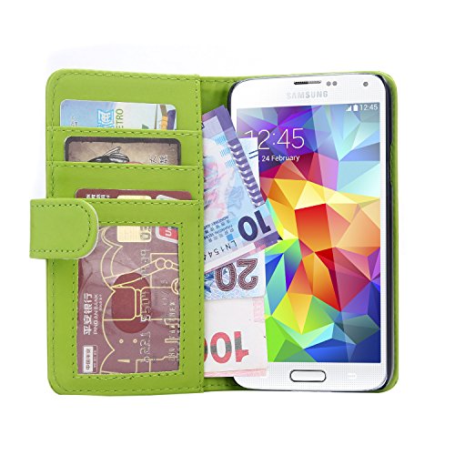 EnGive - Custodia per Samsung Galaxy S5, in ecopelle, a portafoglio, Ecopelle, green, Samsung Galaxy S5