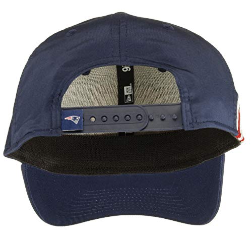 Elegante berretto blu in materiale simile al neoprene | Ricamo rosso in 3D del numero di fondazione in uno sguardo sconvolto sul davanti | Grande ricamo del logo dei Patriots sul lato destro | Etichetta con il logo della squadra sulla chiusura a scatto