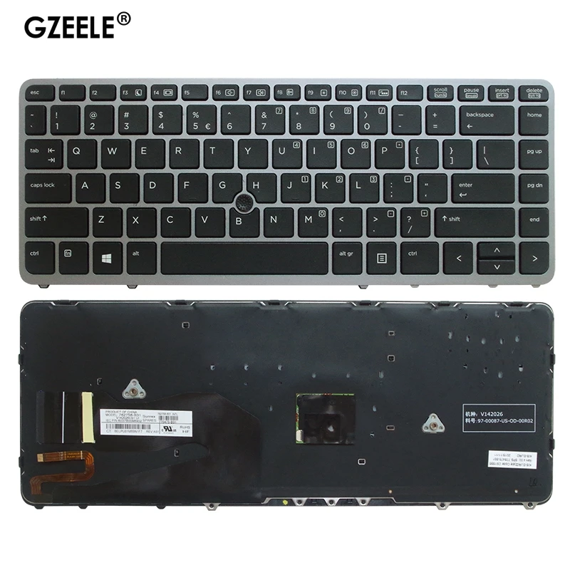 English Laptop Keyboard for HP EliteBook 840 G1 850 G1 ZBook 14 for HP 840 G2 US Silver backlight with pointing stick