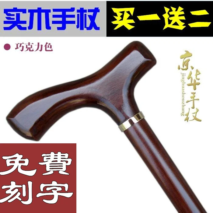Engraving JINGWAH elderly wood stick four foot wooden cane cane leading