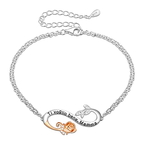 ENGRAWELRY Bracciale Donna Incisione Ti voglio bene Mamma Argento 925 Braccialetto Infinito e Rosa con Cristallo Gioielli Regalo Originale per Natale Festa della Madre Compleanno