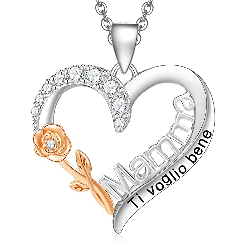 ENGRAWELRY Collana Donna Incisione Mamma Ti voglio bene Argento 925 Pendente Ciondolo Cuore Rosa con Cristallo Gioielli Regalo Originale per Natale Festa della Madre Compleanno