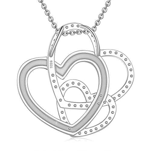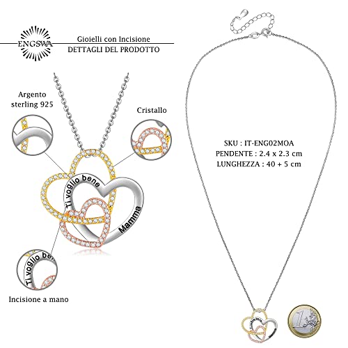 ENGSWA Collana Argento 925 Donna Incisione Ciondolo Cuori Tricolore Regalo Mamma Madre Moglie Nonna