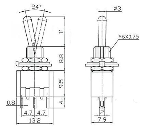 Enisina cablata interruttore a levetta, SPDT, On-Off-On, 3A 250V AC / 6A 125V AC Micro interruttore basculante MTS-2, 10pcs (SPDT)