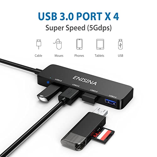 Enisina Hub USB 4 Porte USB 3.0 HUB Slim & Light per Dispositivi Compatibili USB, Nero