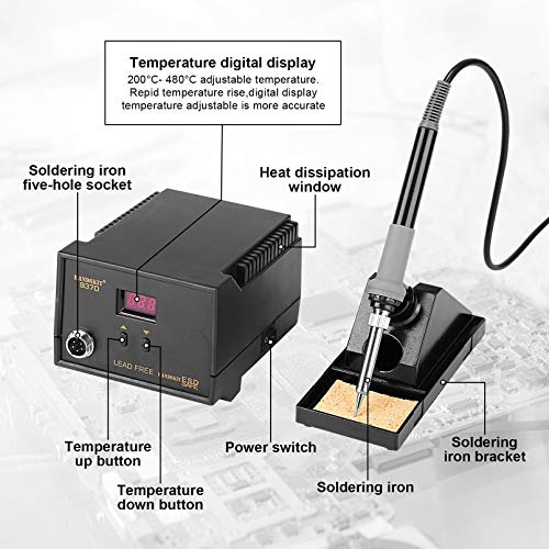 【LCD digital】 La temperatura del soldador se puede configurar entre 200 ~ 480 ° C, la temperatura aumenta más rápido, el ajuste de temperatura de la pantalla digital es más preciso.