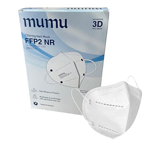 MUMU 50 Mascherine FFP2 - Certificate CE 2841 - Prodotte in Europa - B - 5 Veli - Colore Bianco - Confezionate Singolarmente - 5 Box da 10 Pezzi