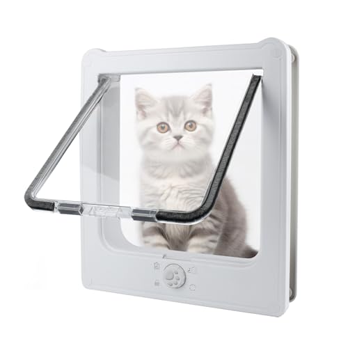Enjoying Porta per Gatti Dimensioni Esterne 23,5 x 27,5 cm, Entrata a 4 vie Porta per Gatti con Serratura Resistente alle Intemperie e Silenzioso Porta per Gatti e Cuccioli