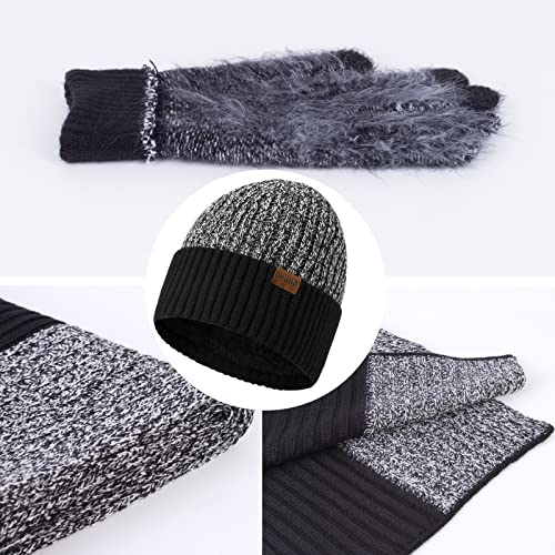 Enjyam Unisex Cappelli+Guanti+Sciarpe Invernali per Donna Uomo, Utile per Tenere al caldo, Sciare, Viaggiare, Regali di Natale(in totale 3 pezzi),Nero