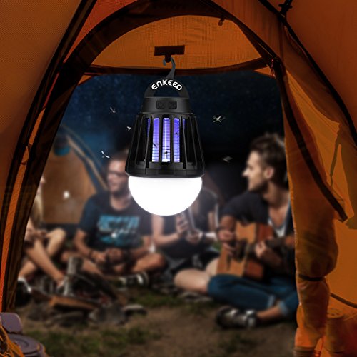 ENKEEO 2-in-1 Lanterna da Campeggio+ Zanzariera Elettrica, Anti-Insetti Lanterna, Portatile Impermeabile IPX6, 3 modalità di Luce 2000mAh, 2000mAh Batteria USB Ricaricabile (Nero)