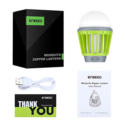 ENKEEO 2-in-1 Lanterna da Campeggio+ Zanzariera Elettrica, Anti-Insetti Lanterna, Portatile Impermeabile IPX6, 3 modalità di Luce 2000mAh, 2000mAh Batteria USB Ricaricabile (Verde)