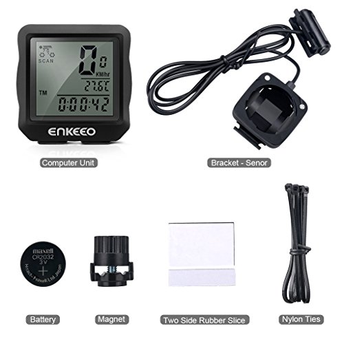 Enkeeo Velo 1.0 Wired Bike Computer, Speedometer, Bicycle Odometer, Backlit Display, Multifunction Tracking Distance, Speed, Time, Temperature, Black by ENKEEO