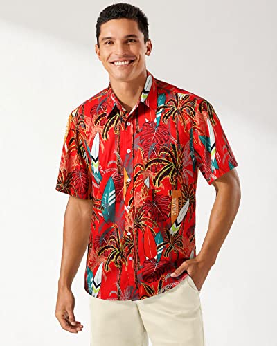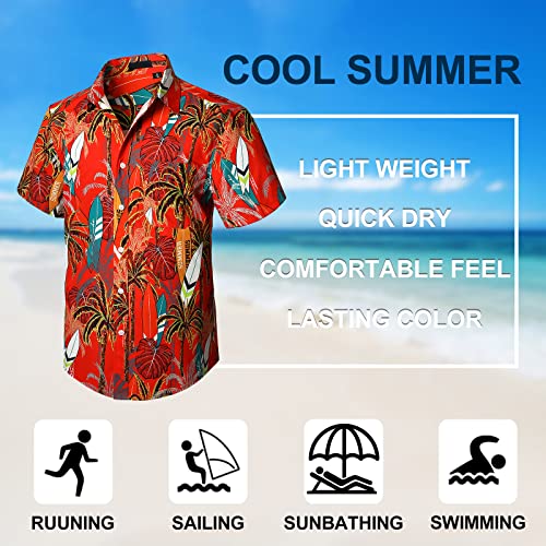 Enlision Camicia Uomo Hawaiana Manica Corta Funky Camicie Stampate Hawaiane Aloha Shirt con Tasca Frontale Fantasia Camice per Barbecue Estivo,Rosso,XL