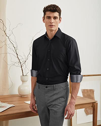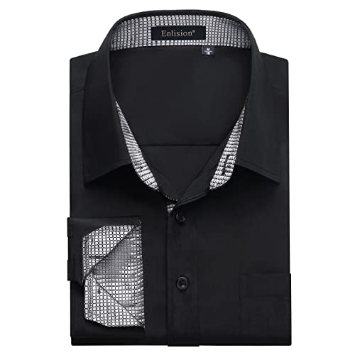 Enlision Camicia Uomo Nera Manica Lunga Elegante Formale Camicie Classico Abbottonato Contrasto Cotone Casual Camicia Funerale XL