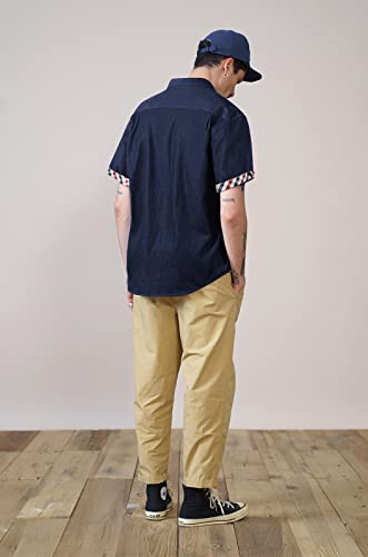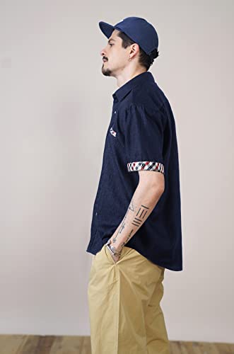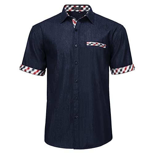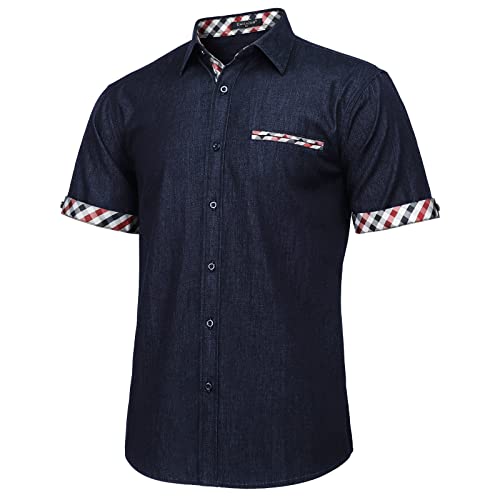 Enlision Camicie Casual da Uomo Camicia di Jeans a Manica Corta con Bottoni Western vestibilità Standard Stile Cowboy Denim S-XXL (XL, Blu Navy/Rosso)