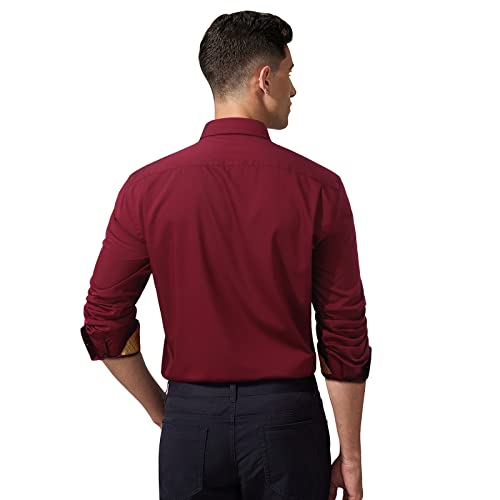 Enlision Camicie da Cerimonia Uomo Manica Lunga Bordeaux Formale Camicia Classiche Bottonato Contrasto Casual Camicie Facile Stiro 2XL