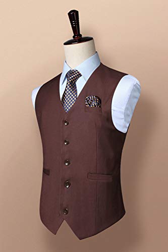 Enlision Gilet da Abito da Uomo Slim Fit Tinta Unita Cotone Panciotto Elegante Casual Moda Smanicato Scollo a V Matrimonio Formale Lavoro Cerimoni Marrone L