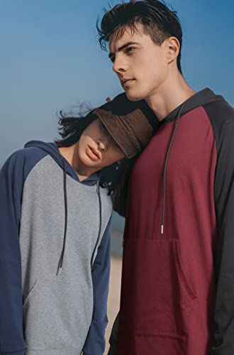 Enlision Pullover da Uomo con Cappuccio Felpa con Cappuccio Patchwork Top Manica Lunga Casual con Coulisse Felpa con Cappuccio con Tasca Kanga (XXL, Borgogna/Nero)