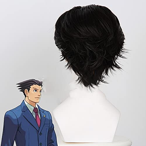 Enlylyog Ace Attorney: Phoenix Wright Black Anime Parrucca Retro Party personalità Prom Dress Up Trend Parrucche Spettacoli di Fumetti attività Parrucche per Ragazzi e Ragazze