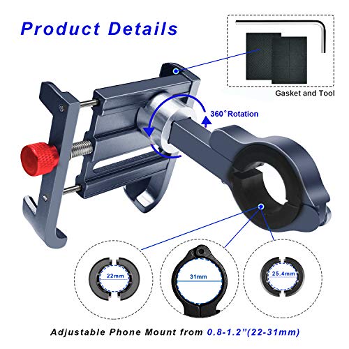 Dimensione del manubrio - Supporto telefono da bici si adatta alla maggior parte delle dimensioni del manubrio tra 2,2-3,1 cm (0,8-1,2 pollici) con il pad, offre pad per manubrio e 4 pad per l'angolo del telefono, protegge il telefono e afferra saldamente il telefono. Anche su pavimentazione accidentata, la staffa non si muove. porta cellulare bici universale adatta per mtb, bici, bicicletta elettrica, scooter, carrozzina, bici da corsa ect.