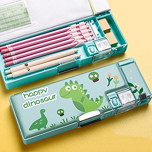 ENPAP Astuccio Rosa, Scomparto Pop-out con Pulsante, 3 Scomparti, per la Scuola, per Ragazzo/Ragazza,Green