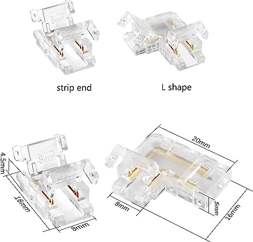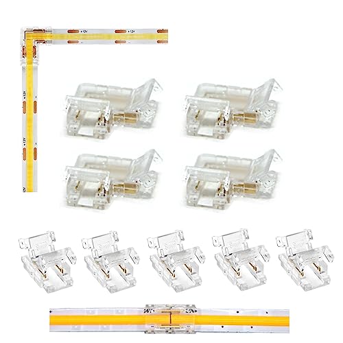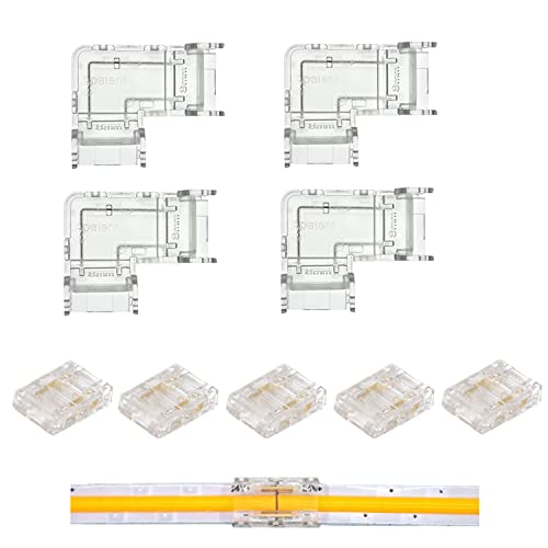 ENQIMAOYI Connettore per strisce LED COB, 4 connettori angolari a forma di L a 2 pin, 5 connettori da striscia a striscia senza spazi per interni strisce LED monocolore da 8 mm