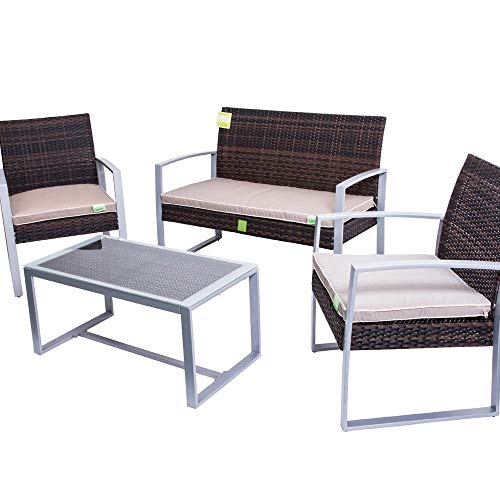 Enrico Coveri Set Completo Sofa' Tecno Marrone in POLYRATTAN ARREDO Giardino Bar 956775