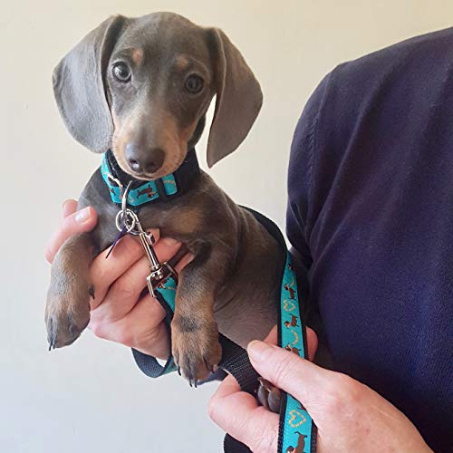 Ensamble - Collare e guinzaglio per cani, Teckel blu, taglia S, lunghezza 25-38 cm, larghezza 2 cm
