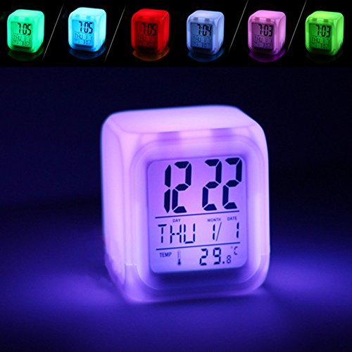 Enshey, sveglia digitale con termometro a LED e 7 diversi colori che cambiano, visualizzazione temperatura, funzione sveglia e sleep timer