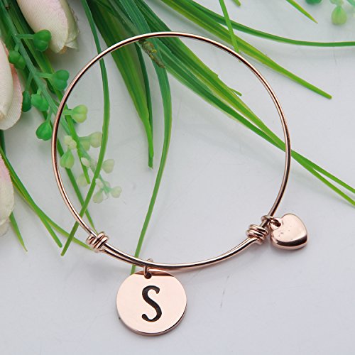 Ensianth - Bracciale Charm Iniziale Oro Rosa Ideale come Regalo per la Festa della Mamma