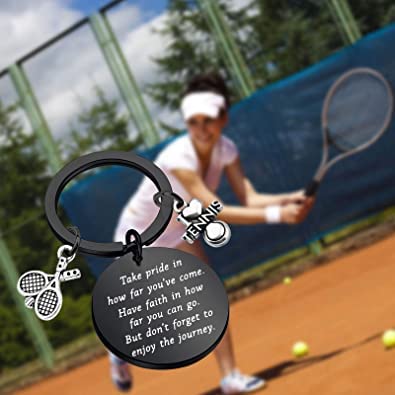 Ensianth, portachiavi da tennis, idea regalo per giocatore di tennis, squadre di tennis, idea regalo, idea regalo, idea regalo per allenatori di tennis, 10 7/8, Acciaio inossidabile,