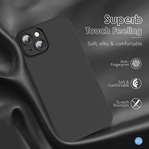Enskko Cover per iPhone 13 Silicone e 2 Vetro Temperato 6,1'' Custodia iPhone 13 Protettiva con Tutto il Corpo Tocco Morbido setoso, Cover Antiurto con Fodera in Microfibra, Nero