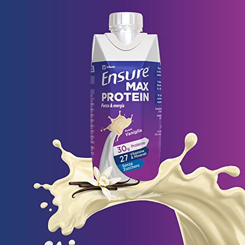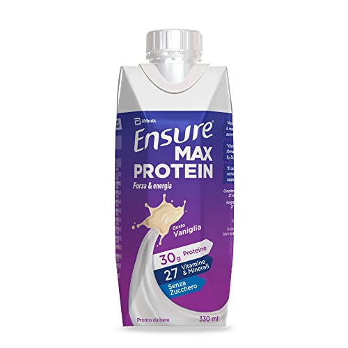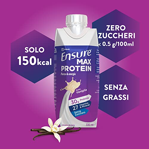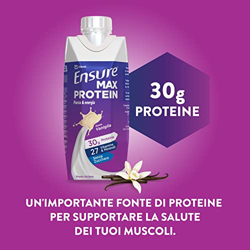 Ensure Max Protein Integratore alimentare proteico, Bevanda Proteica pronta da bere con Proteine e 27 Vitamine e Minerali, Confezione 8x330 ml, Gusto Vaniglia