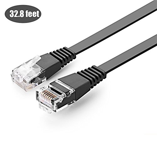 Enterest Black Ultra Slim Flat Profile RJ45 Cat 6 Flat Ethernet Cables With High-Speed For Computers/Modem/Smart Televisions/Router/LAN/Printer/MAC/Laptop /PlayStation 3/4/Xbox (32.8 Feet - 10 Meters)