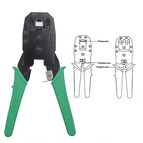 La bocca della pinza è stata realizzata in acciaio al manganese, resistente e durevole. Quando si usa la pinza basta inserire la punta in plastica trasparente dei connettori in posizione e fare pressione. Adatta a spine modulari da 4, 6 e 8 poli.