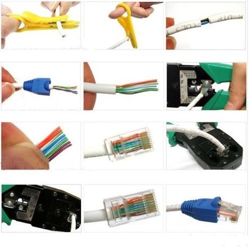 Contenuto della confezione: 1 crimpatrice per cavi di rete, 1 tester per cavi, 2 spellacavi, 1 cavo di rete da 5 m e circa 70 spine modulari RJ45 CAT 5.