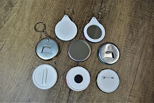 La confezione contiene: macchina crea spille, cutter rotondo, piano di taglio, materiale d'assemblaggio per 100 spille e semplici istruzioni, devi solo scegliere la dimensione!