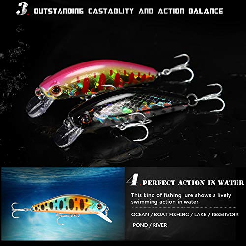 occhi 3D lo rende un potente strumento di cattura, produttore di esche da pesca. Kit mini esche da pesca topwater galleggiante realistico nuoto esche per trota persico luccio con scatola per tackle spinner esche cucchiaio borsa salmone walleye