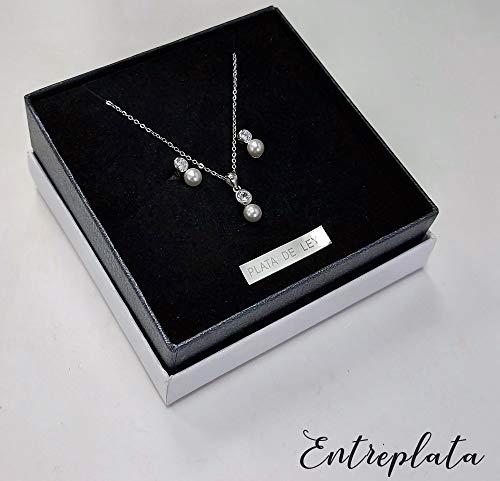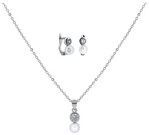 ENTREPLATA Set collana con ciondolo e orecchini in argento Sterling 925 con zirconi e perla, regalo originale per ragazza e donna, Modello 7