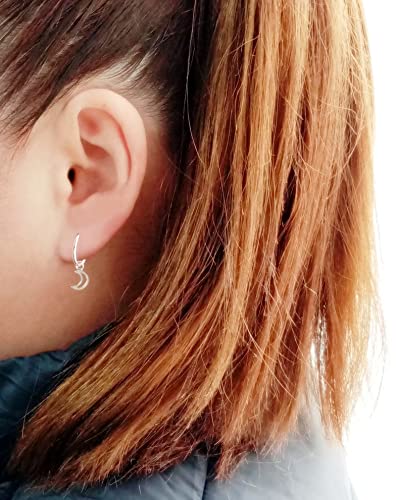 ENTREPLATA Orecchini in argento Sterling 925 a cerchio con ciondolo a forma di luna, per donna e ragazza, unisex, per bambini, con ciondolo a forma di luna traforata