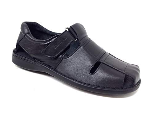ENVAL SOFT 5246600 Sandali Uomo Strappo Vera Pelle Nero Made in Italy, 41