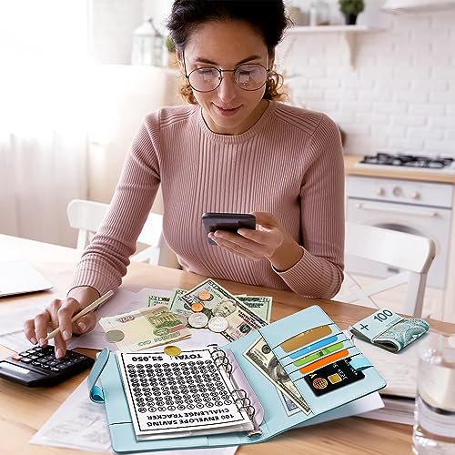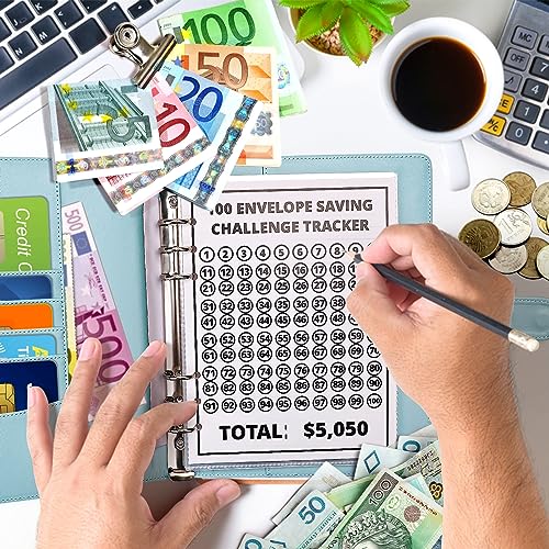 100 Envelope Savings Challenge Binder - Raccoglitore da 100 buste - Raccoglitore da buste, raccoglitore di risparmio, libro di bilancio con buste (Blu)