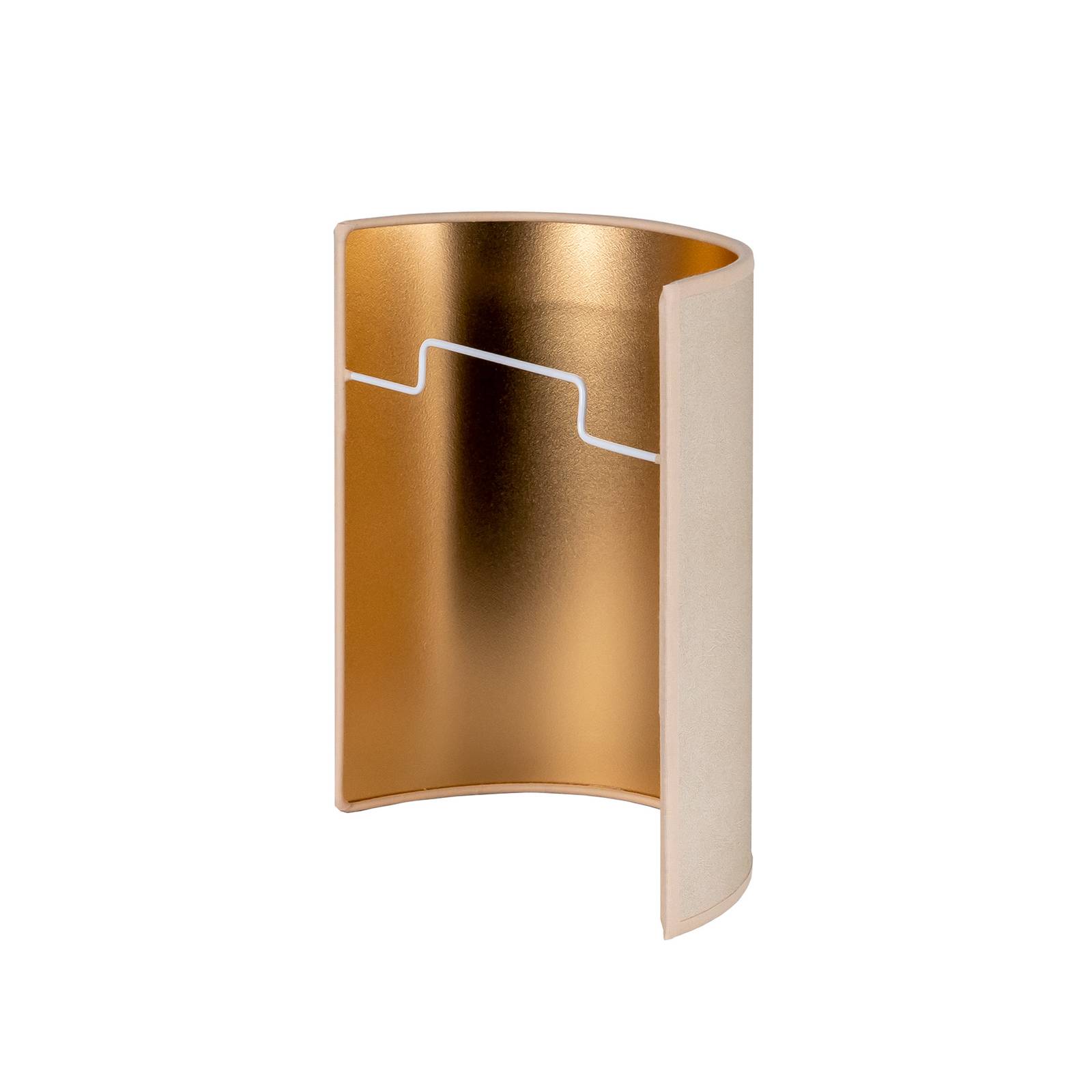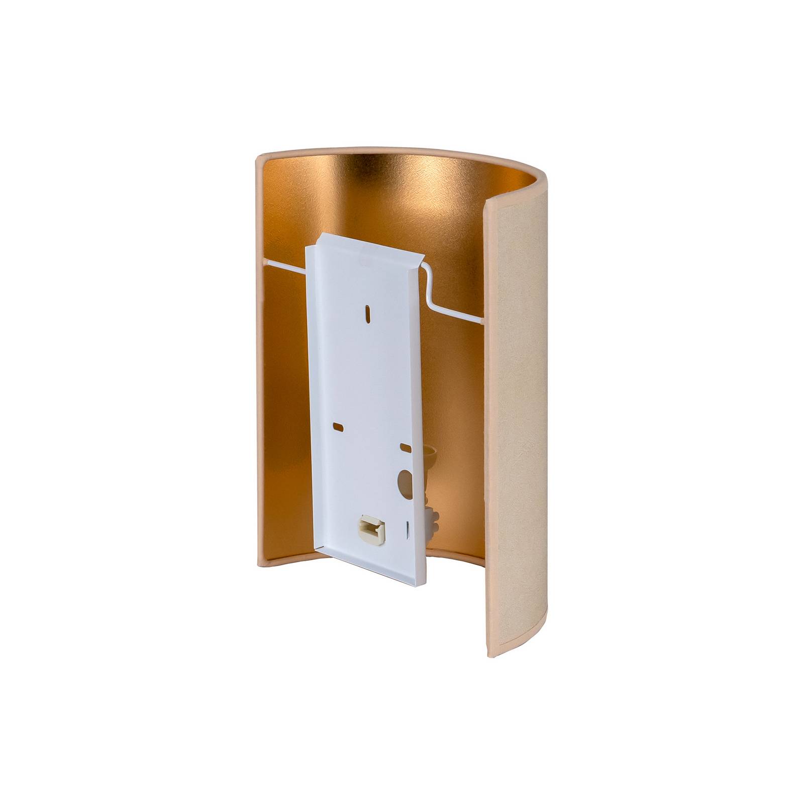 Applique semicircolare Idun - paralume vegano ricavato dalla buccia di mela L'applique Idun prodotta in Europa è dotata di un paralume beige chiaro a forma di mezzo cilindro. È realizzato in finta pelle vegana ricavata dalla buccia di mela e ha una sensazione piacevole e naturale al tatto. La luce viene emessa verso l'alto e verso il basso.